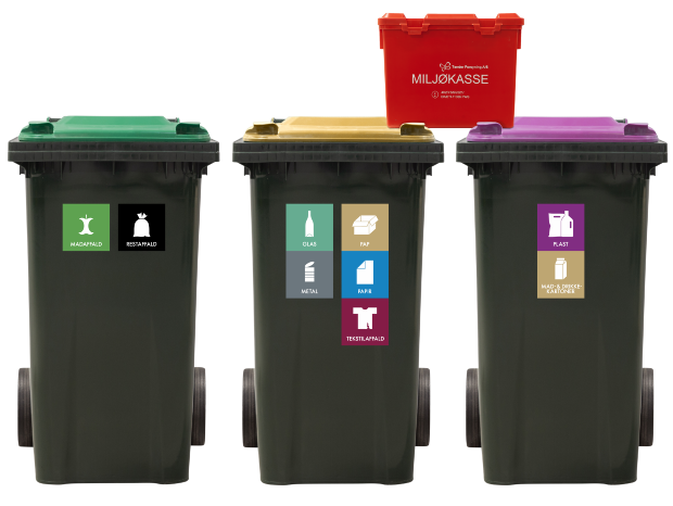 - Miljøkassen, kan stilles frem sammen med genbrugsbeholderne eller byttes på en genbrugsplads.
