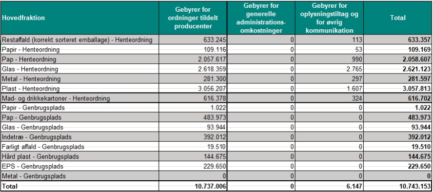 Producentgebyrer for emballageaffald 2026